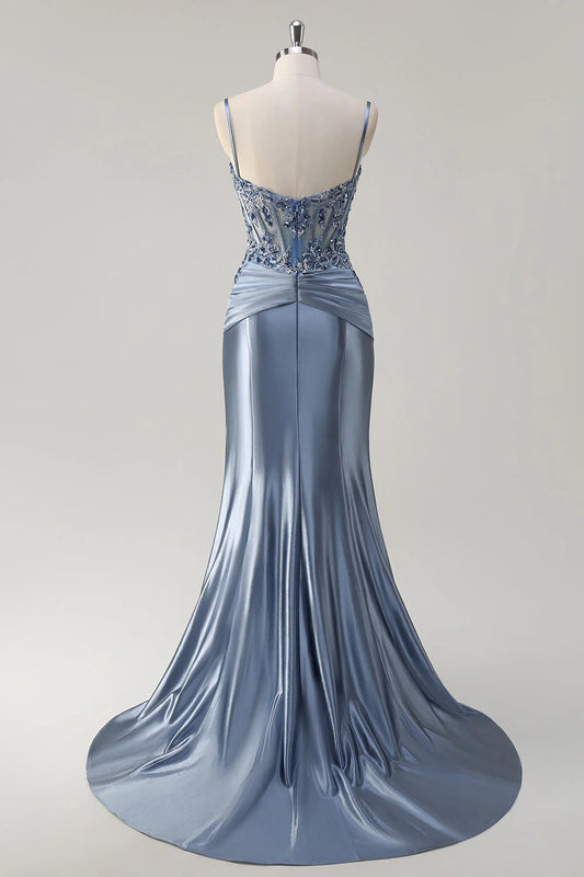 A-Line Prom Dresses Glittering Dress Evening Party Dress Formal Evening Sweep / Brush Train Sleeveless Spaghetti Strap Stretch Satin Backless with Rhinestone