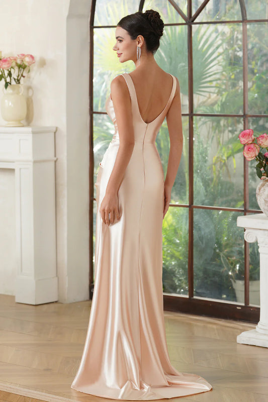 Taupe Sheath Halter Satin Long Bridesmaid Dress