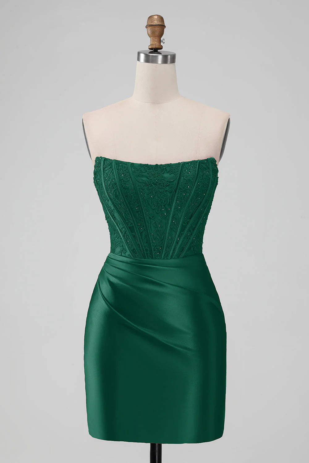 Sparky Red Bodycon Strapless Short Homecoing Dress with Beading